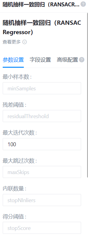 组件名称 | 随机抽样一致回归(RANSACRegressor) | ||