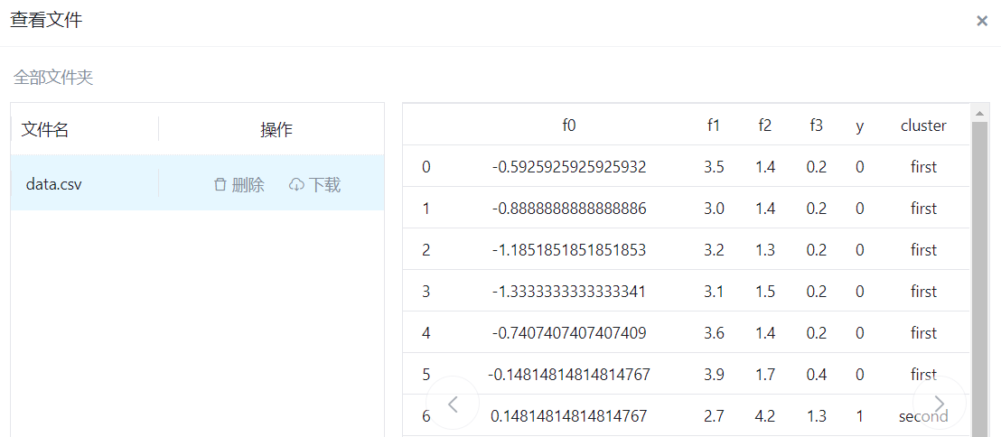 - 与前一个组件输出的端口连接(必须是csv类型)